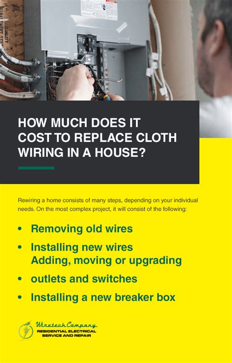 Cloth wiring wears down easier: The cost to replace cloth wiring can vary depending on several factors, but on average, it can range from $8,000 to $15,000. Over the years, it is extremely likely that the cloth covering on your wiring will.