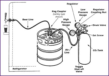 Kegerator Setup Diagram. Briefly pull the ring on the keg coupler's pressure relief valve f to allow. Attach the pine pieces together using the angle brackets and wood screws, creating butt joints.