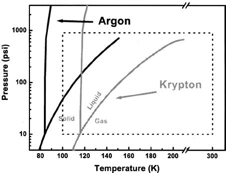 Molecule phase diagram showing the transition phases. O the sample is initially a gas. Refer to the following phase diagram (not to scale!) for krypton: